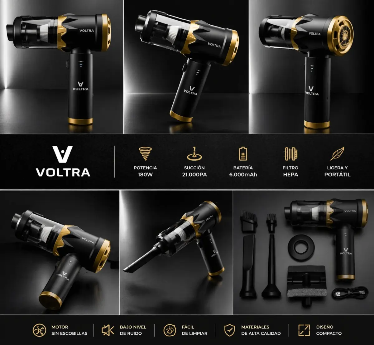 La Voltra® 3 en 1 redefine la limpieza portátil. Ideal para autos, hogar y oficina, combina potencia, comodidad y estilo en un solo equipo.