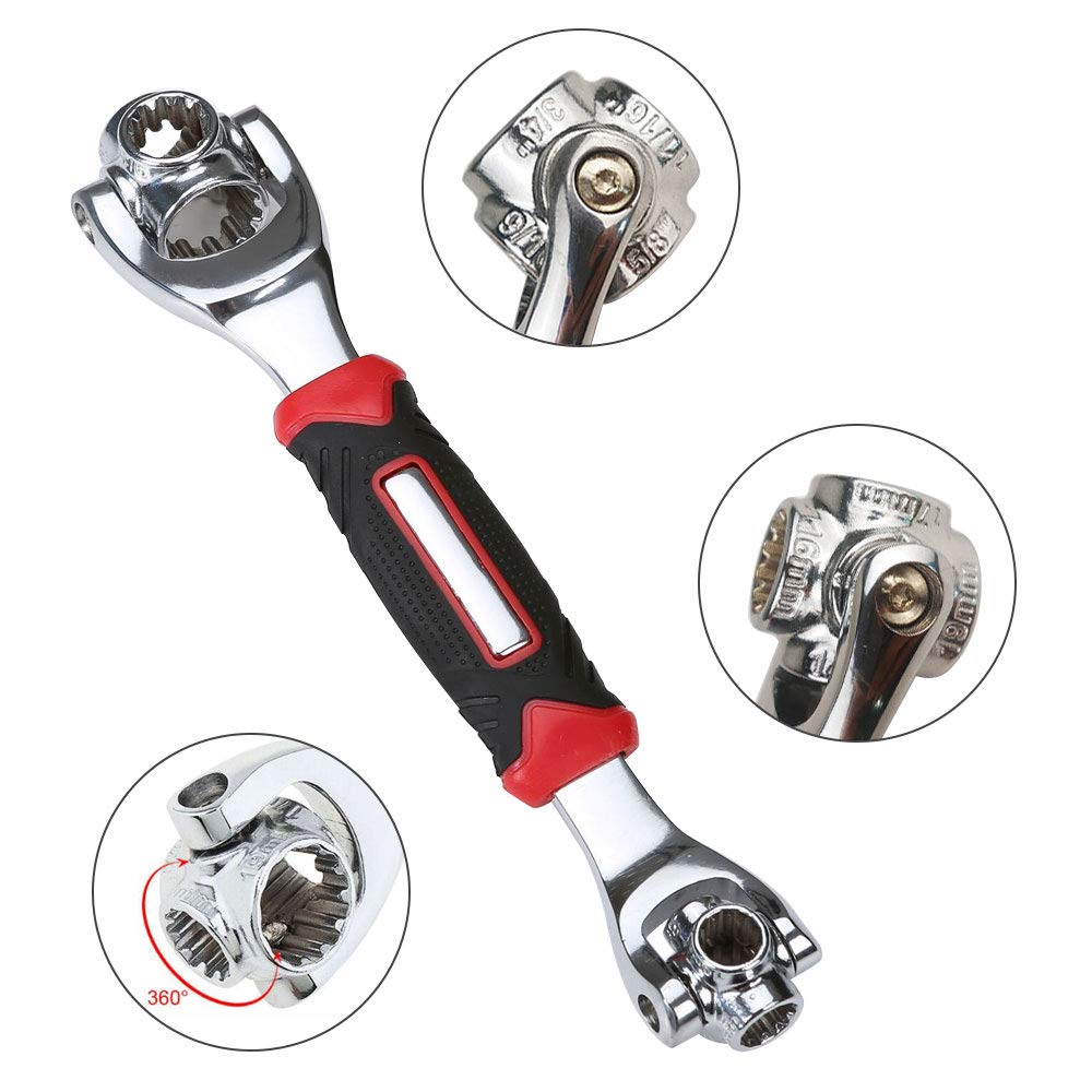De diseño único que se convierte instantáneamente en la herramienta adecuada para cualquier trabajo, ¡simplemente haciendo clic entre los diferentes tamaños! ¡No necesita múltiples llaves de tubo o juegos de herramientas grandes, simplemente gire la cabeza para encontrar el ajuste correcto!